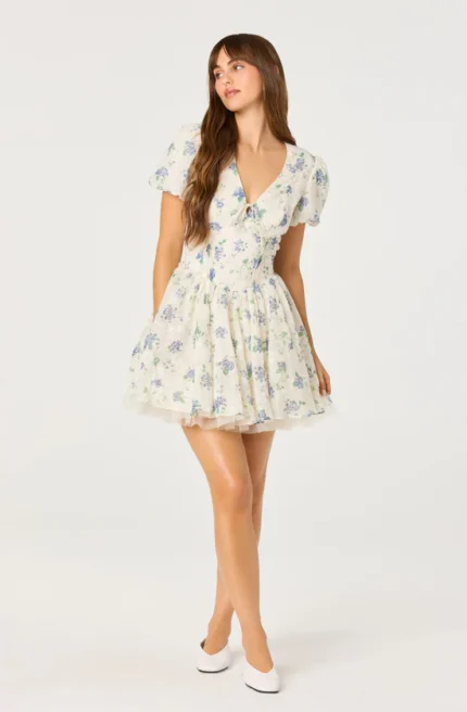 CORALIE DROP WAIST FLORAL MINI DRESS