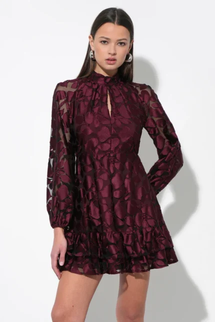 ELINOR VELVET BURNOUT MOCK NECK FIT AND FLARE DRESS
