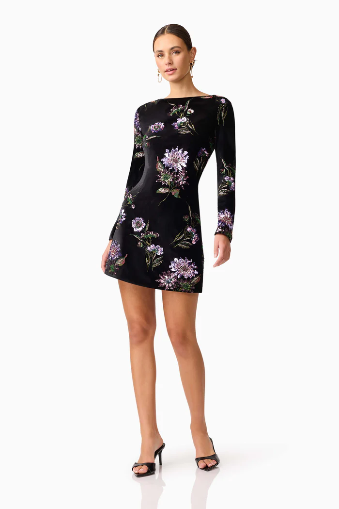 Striking, sleek and elevated for after-dark moments, the Clio Long Sleeve Mini Dress in Black brings texture and sophistication to your evening edit. Made from a rich embroidered sequin velvet fabrication, this velvet long sleeve mini dress offers just the right amount of shimmer and structure.