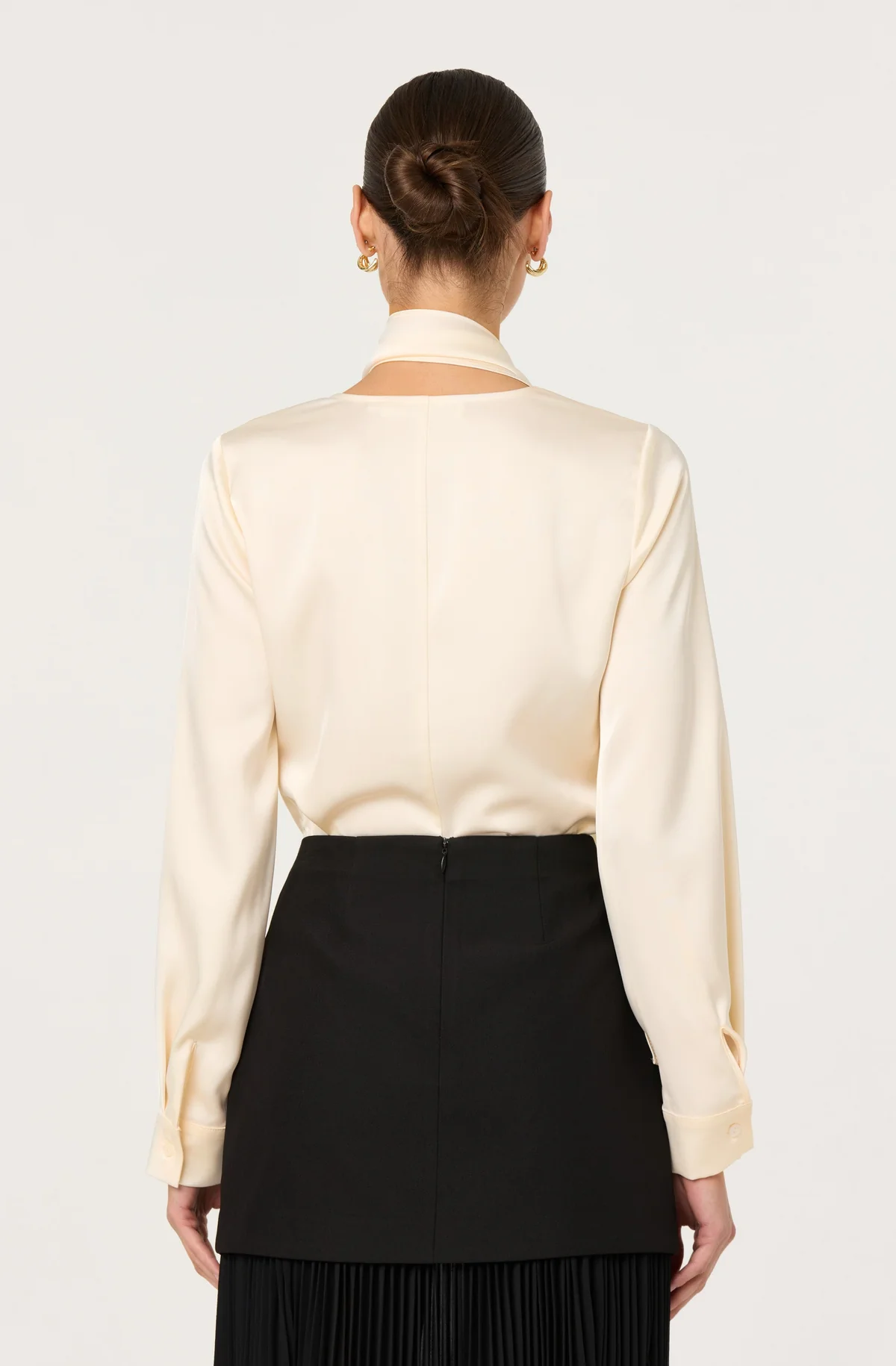 • Satin cutout long sleeve scarf top