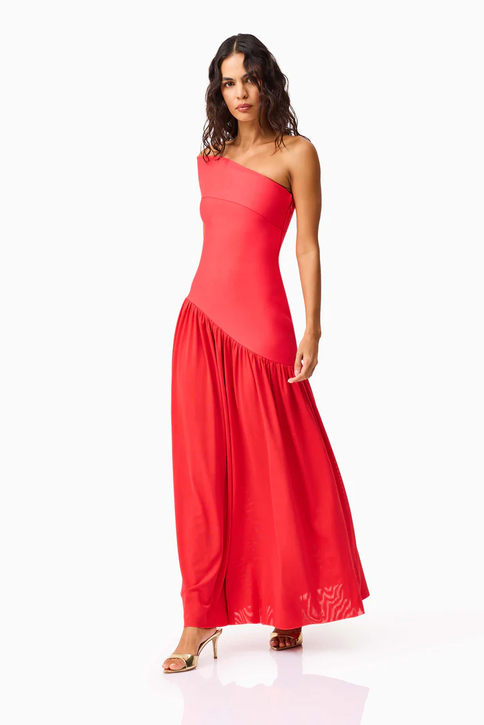 Command the room in the Jesselle Off The Shoulder Gown in Red, a sleek, sculpted design that blends bold elegance with modern femininity. This statement gown features a striking one shoulder neckline that wraps diagonally across the décolletage, offering a contemporary twist on classic glamour.