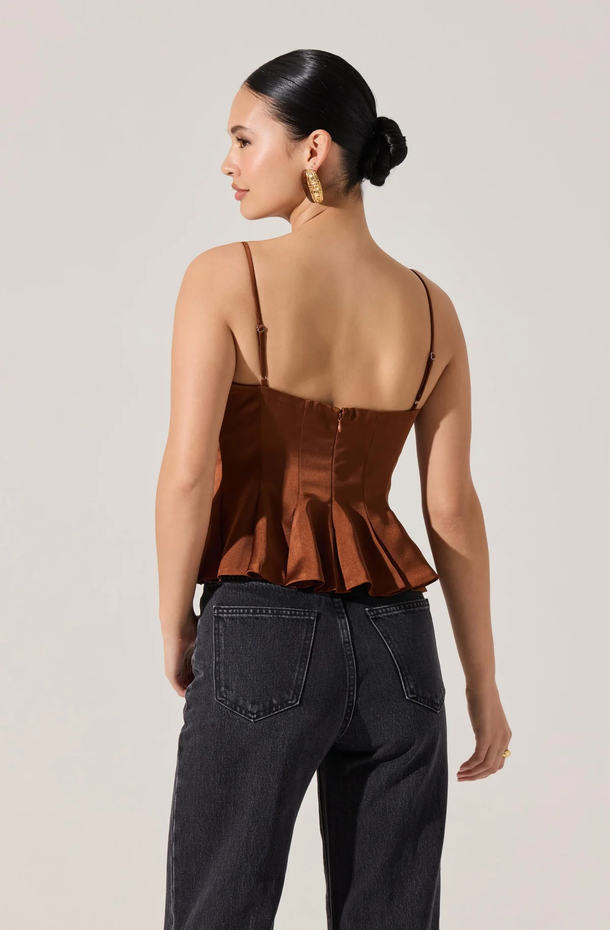 - Satin pleated peplum top